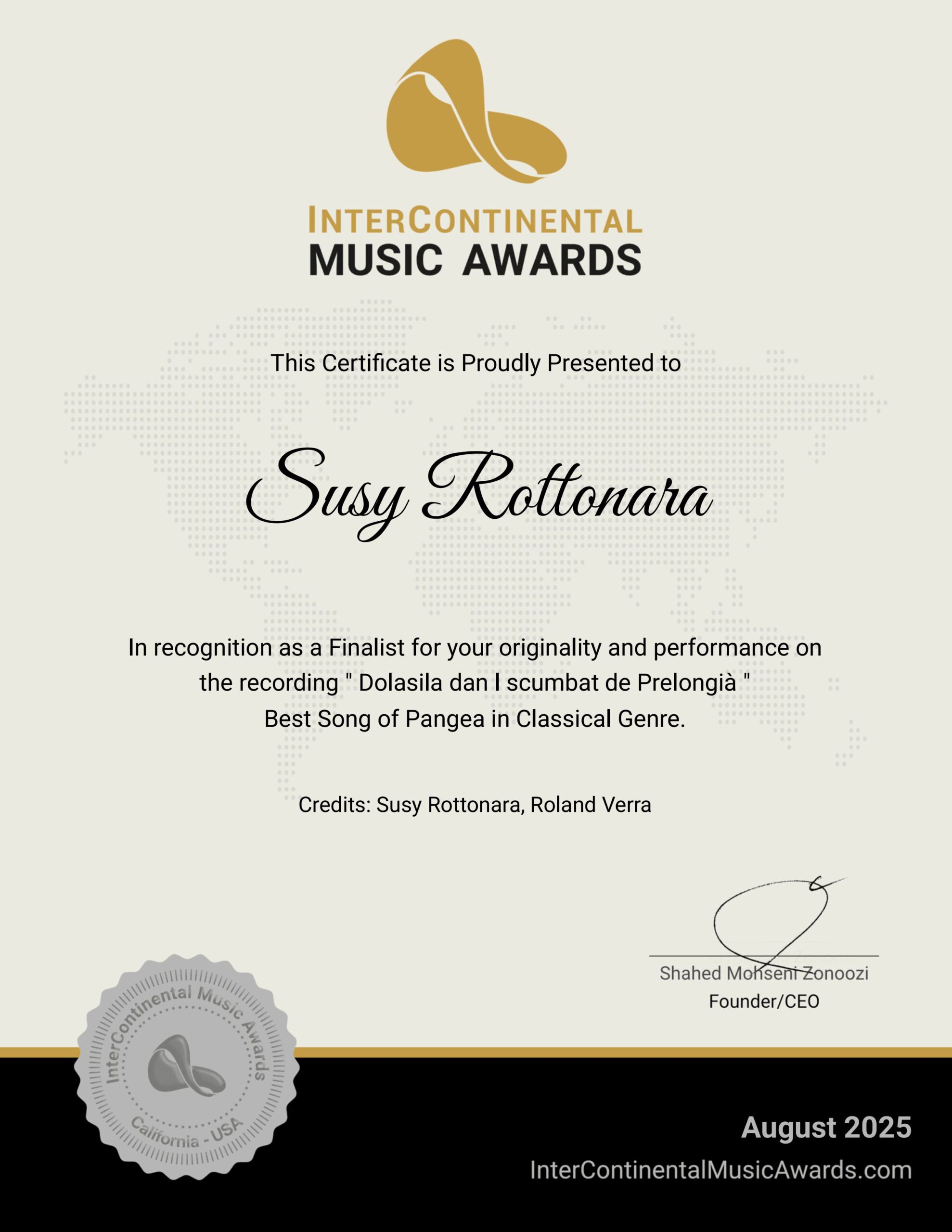 Certification Intercontinental Music Awards