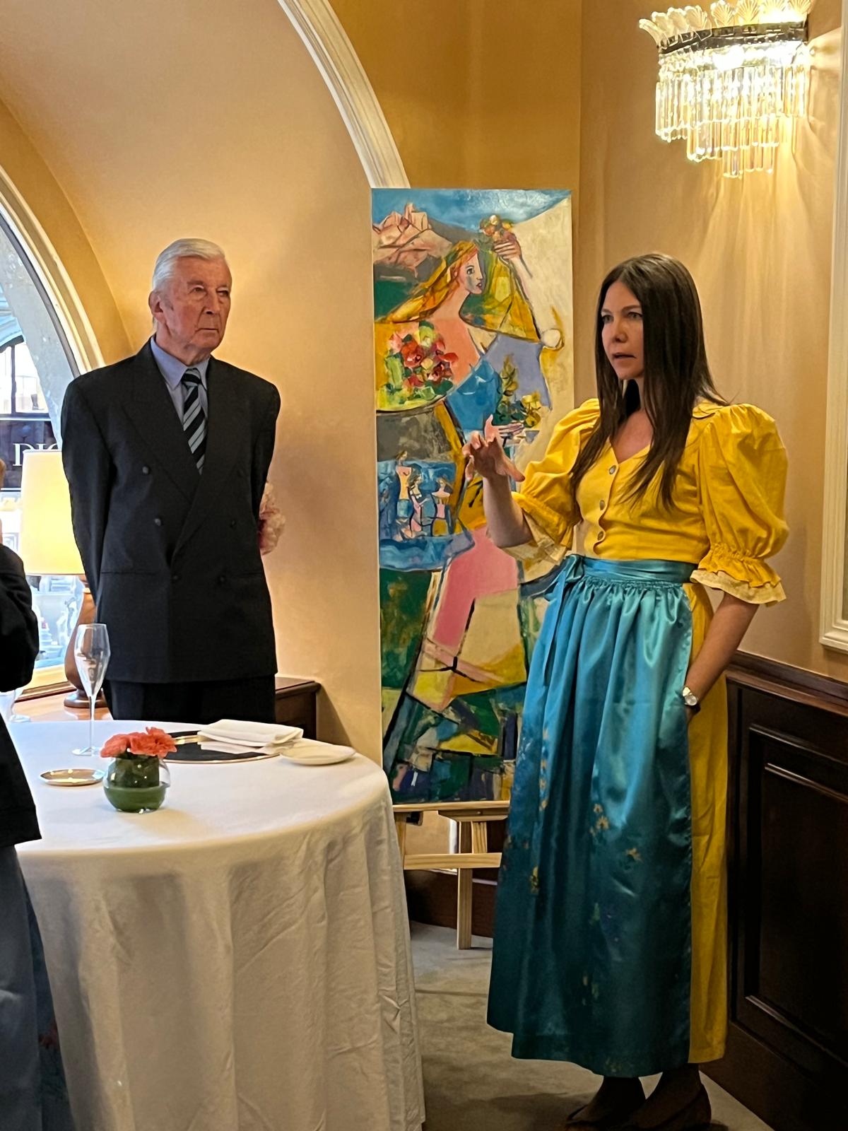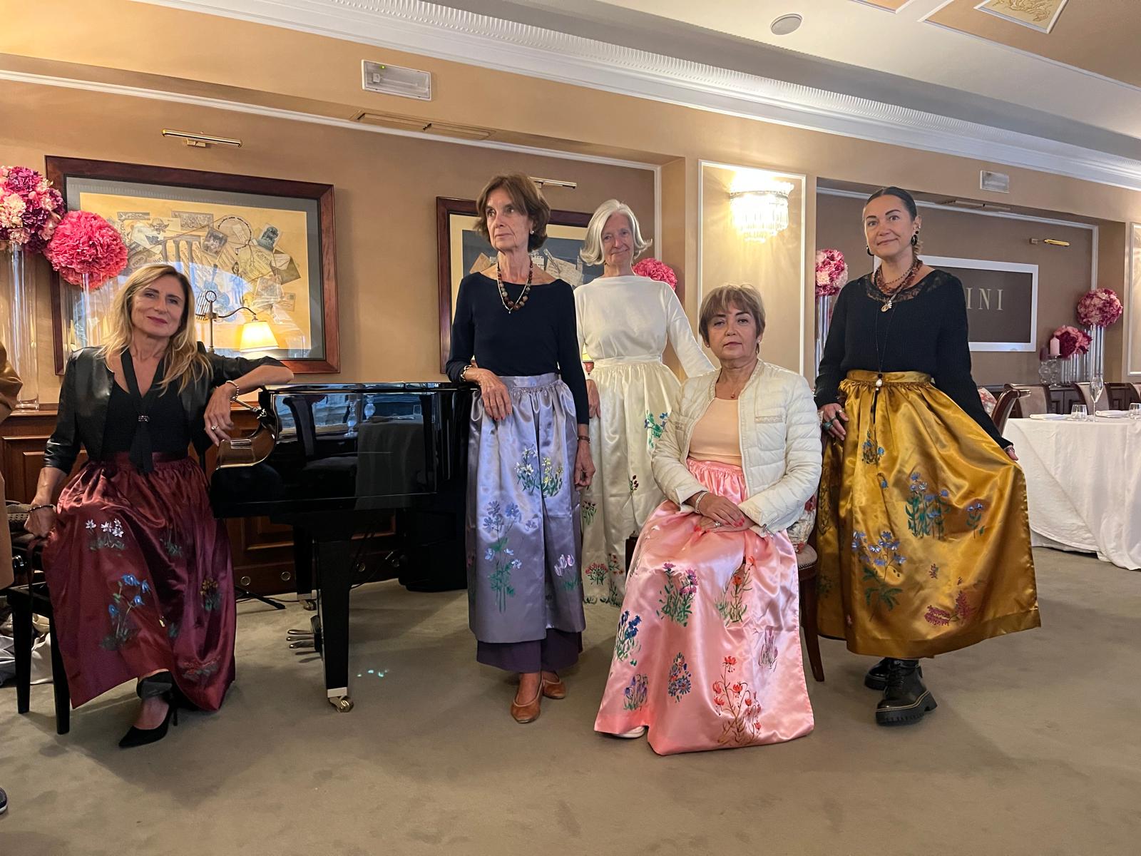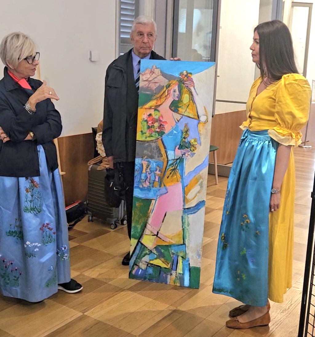 Le ambassador del progetto con le opere pittoriche Merisana e Sidonia, protagoniste di due leggende ladine ambientate a Cortina d’Ampezzo