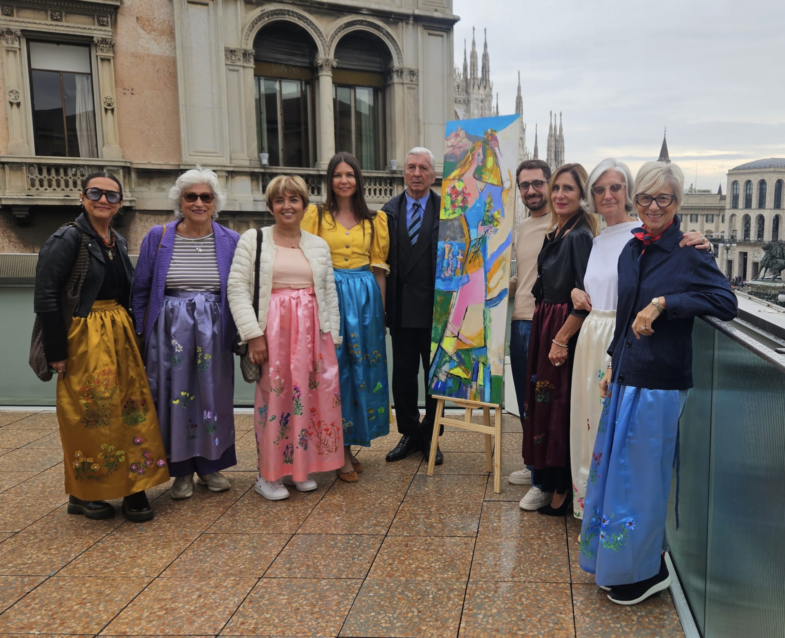 Presentazione alla mostra “Fashion meets sport” , un’altra iniziativa nell’ambito dell’Olimpiade culturale Milano Cortina 2026 e shooting in terrazza con affaccio su Piazza Duomo